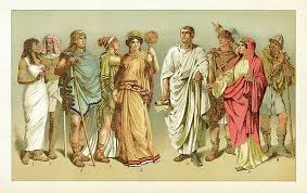 Egyptian fashion – The high class and the middle class would usually be seen wearing gold chains, jewelry necklaces and bracelets and the best sandals in the world. Pharoah would have his big usually blue, golden hat on and and white cloth wrapped around his body exposing still his arms and legs. This is how many people back in Egypt, Greek and Roman attire was back then.