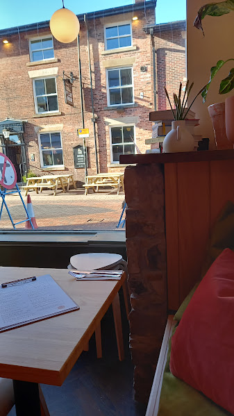 I picked the right, and friendly and welcoming cafe for lunch, when i entered i was greeted with warm, friendly and welcoming smiles and morning which i greeted them back , where i ordered earl gray tea hot drinks where only £2, salad and soup where around £7 to £8, i ordered the soup of the day, which was tomato and birkely, good since i had a little bit of a cold sup and tea is the cheapest and healthiest lunch ever. total order £9.50 but more cheaper then chester and those other takeaways next to the bus station.
