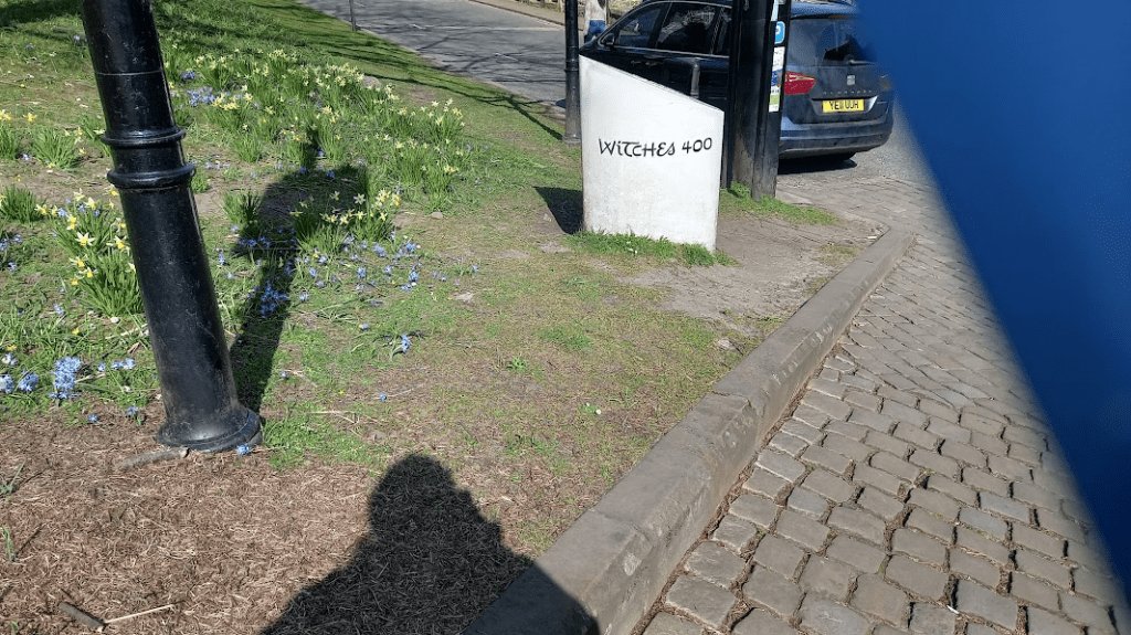 I do apologize for pictures being blurry it is very small doorway but this is where the women accused of witch craft where hanged.