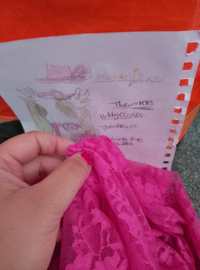 So i want to be a fashion designer great, first i recreate my old design sketches, use the colour palate of course pink for the pink dress this one. Then the fabric which i went with linen which i was also lucky that the fabric store i bought it from had a special offer of £2 four different fabrics was only £8 in total.